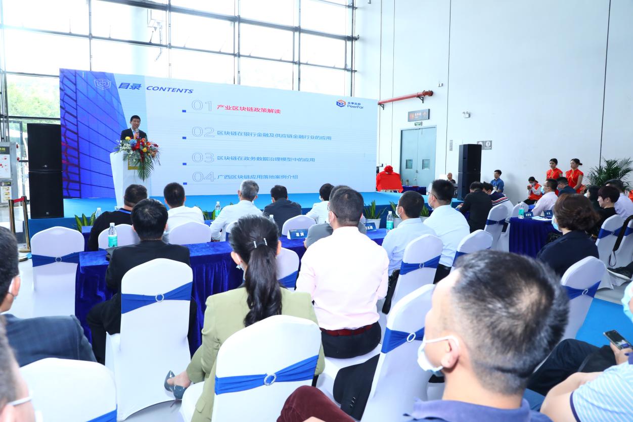 2020年11月14日,由廣西國際商會東盟區塊鏈創新產業委員會主辦,廣西星盟投資基金有限公司、廣西眾享遠辰科技有限公司、廣西北投星聯國際供應鏈管理有限公司承辦的“東盟區塊鏈產業論壇”在南寧國際會展中心舉行。廣西貿促會黨組成員、副會長伍娟,廣西大數據發展局黨組成員、總工程師周鳴,廣西大數據發展局原副局長鐘穗,廣西自治區人民政府參事劉建宏,廣西自治區衛生健康委法制與監督處覃安寧,桂林電子科技大學教授丁勇,廣西信息化發展聯合會秘書長奉佳,廣西國際商會東盟區塊鏈創新產業委員會主任蘇可寧,梧桐鏈態基金總裁曹迪,北京眾享比特科技有限公司副總裁李瑞,廣西北投星聯國際供應鏈管理有限公司總經理仝彤,廣西航天信息技術有限公司總經理黃家超,英飛拓科技廣西公司總經理劉志鵬,寶聯企業集團副總裁、綠地集團廣西公司原黨支部書記李艷,廣西信息化發展聯合會副秘書長趙志強,融道科技總經理高瑩瑩,中銘股份董事長劉致銘,民生銀行廣西私行部總經理梁丹,卡西亞科技董事長卿旭,廣西大數據產業發展有限公司信創事業總監葛淵等一百多位政府領導及企業精英代表出席本次論壇。