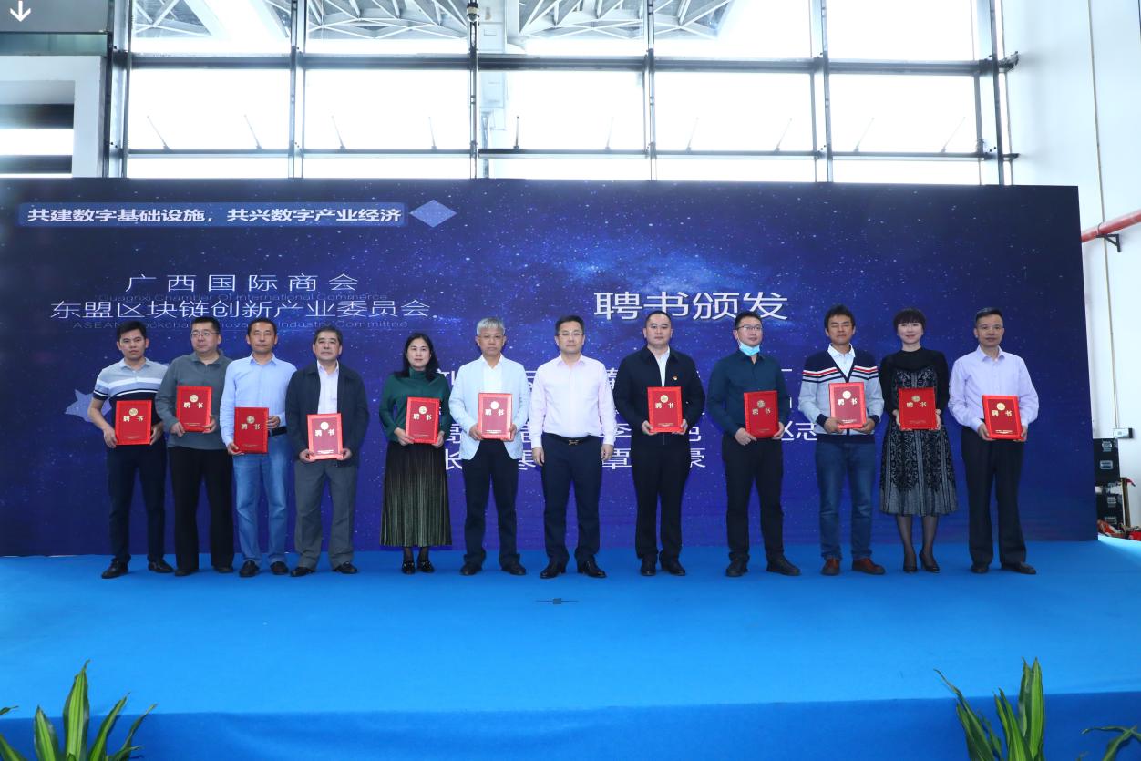 (圖6廣西國際商會東盟區塊鏈產業委員會為與會專家組成員頒發專家聘任聘書1)